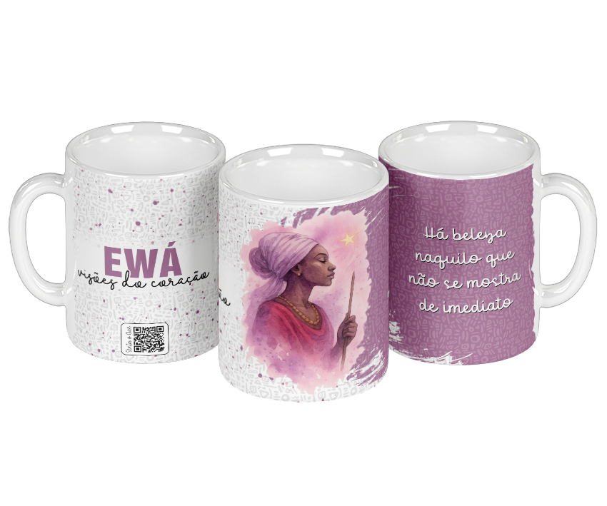 Além da arte, cada caneca conta com um QR Code interativo que direciona para uma mensagem especial relacionada ao Orixá representado, criando um momento de pausa, introspecção e conexão com a fé. É um convite para começar o dia com propósito e axé.